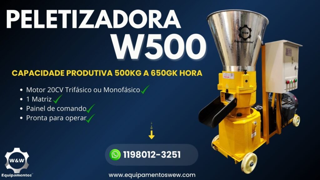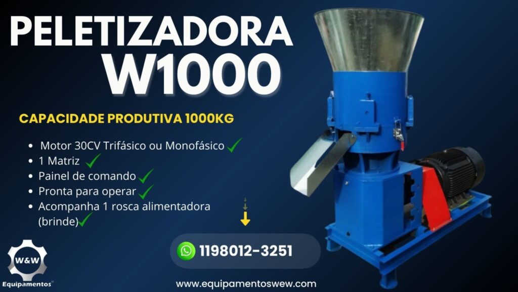 Nossa peletizadora de ração animal é a solução ideal para quem busca qualidade, eficiência e rentabilidade na produção de ração. Design robusto, processo produtivo otimizado, proporcionando ração uniforme, nutritiva e de alta durabilidade. Diversos modelos para atender tanto pequenos quanto grandes produtores, nosso equipamento eleva o desempenho e a competitividade do seu negócio.